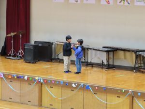 最後には、職員によるマリンバ演奏から始まるサプライズの出し物もあり、アンコールの大合唱でフィナーレを迎えました。この集会を通して、子どもたちは 自分を表現する喜び を感じ、友達の新たな魅力を発見することができました。わくわく集会は、子どもたちの成長と笑顔が輝く大切な時間となりました。