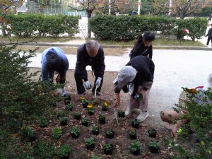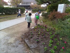 HOME > ギャラリー > R7 イベントギャラリー > 秋の花いっぱい活動 秋の花いっぱい活動 入力日2025年11月21日 閲覧数48 11月19日(水)、校舎東側の「あいさつ通り」にて、秋の花いっぱい活動を行いました。 花いっぱいコミュニティの皆さんと、1年生から6年生までの児童約40名が参加し、花壇にパンジー、ビオラ、キンギョソウ、ノースポールの花苗を植えました。コミュニティの方に植え方を教えていただきながら、子どもたちは丁寧に苗を植え、色とりどりの花壇が完成しました。華やかな花々に囲まれ、活動中は笑顔があふれていました。ご来校の際には、ぜひ「あいさつ通り」の花壇をご覧ください。 前へ 一覧へ戻る 次へ