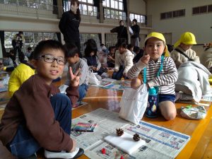 11月26日(水)、1年生と年長さんとの交流会を行いました。 今回参加してくださったのは、龍谷こども園・おへそこども園・若楠こども園の年長組のみなさんです。1年生は朝から準備にはりきり、年長さんの到着を心待ちにしていました。体育館に入場してくると、歓声と拍手で温かく迎えました。交流会では「あきの かざりづくり」のワークショップを実施しました。紅葉した落ち葉やどんぐり、松ぼっくりをボンドで貼り合わせ、すてきなオブジェを完成させました。1年生は優しく声をかけながら、ボンドをつけてあげたり、袋に入れて大切に渡したりと、思いやりのある姿がたくさん見られました。年長さんも、とても嬉しそうな表情を浮かべていました。最後は拍手で見送り、交流会は温かい雰囲気の中で終了しました。1年生は「早く4月にならないかな」と、新しい仲間が入学してくる日を心待ちにしているようでした。