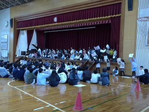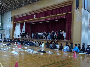 会の最後には、6年生からの出し物もありました。さすが最高学年。前半は各クラスで考えたユーモアあふれる発表で在校生を盛り上げ、後半は心に響く歌で会を感動的に締めくくってくれました。6年生と在校生の心がつながる、素敵な時間となりました。