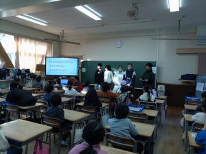 HOME > ギャラリー > R7 イベントギャラリー > 6年生による平和学習報告会 6年生による平和学習報告会 入力日2026年1月22日 閲覧数31 1月22日(木)、6年生が平和学習報告会を行いました。長崎への修学旅行で学んだことを、全学年に向けて丁寧に伝えました。発表では、学年に合わせて内容を工夫し、パワーポイントを使って分かりやすくまとめていました。中には、最後にクイズを取り入れ、学んだことを楽しく振り返るグループもありました。下級生からは積極的に質問が出され、6年生と下級生が一緒に学びを深める姿が見られました。6年生が受け取った「平和のバトン」が、下級生へとしっかり受け継がれていく様子が感じられる時間となりました。 一覧へ戻る 次へ