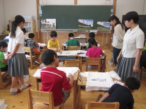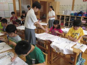 HOME > お知らせ > 非公開: 有小ブログ > 月12日 3年生棚田Tシャツアート展作品制作 月12日 3年生棚田Tシャツアート展作品制作 入力日2019年11月12日 内容本日は3年生教室で、「棚田Tシャツアート展2019」の作品制作が行われました、。子どもたちは真っ白なTシャツに楽しそうに思い思いの絵を描いていました。有田工業高等学校より、3名の生徒さんが指導に来てくださり、いい作品に仕上がってきました。秋の棚田にひらひらとそよぐ子どもたちオリジナルTシャツが見られそうです。お楽しみに! 閲覧数91 前へ 次へ