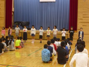 HOME > お知らせ > 非公開: 有小ブログ > 6月10日 音読集会 5年生 6月10日 音読集会 5年生 入力日2019年11月12日 内容今月の音読集会は5年生の発表でした。俳句や短歌、早口言葉などそれぞれが上手に発表しました。さらに、クラス全体で谷川俊太郎さんの「生きる」を群読。見事な発表でした! 閲覧数128 前へ 次へ