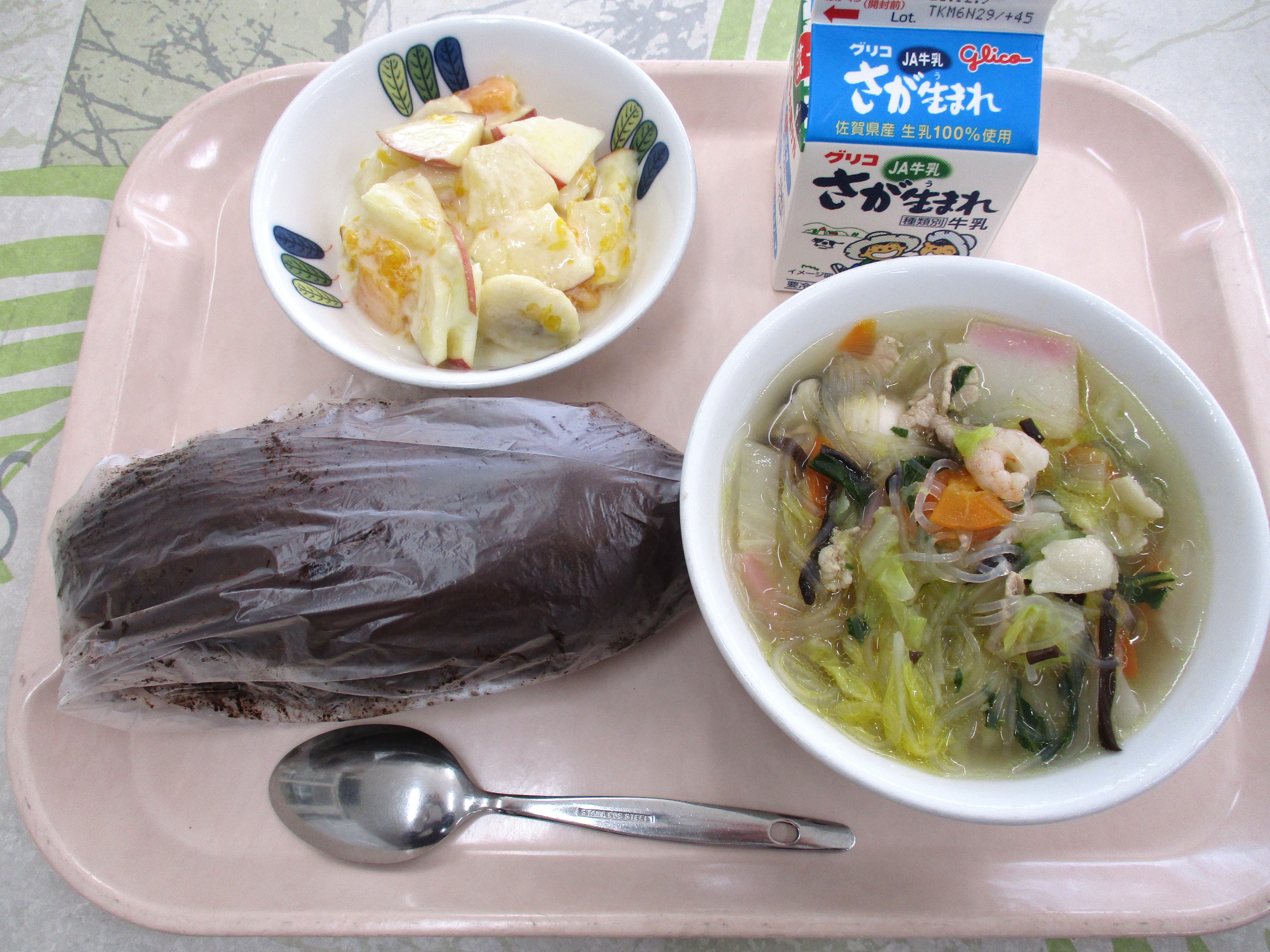 HOME > お知らせ > 今日の給食 > 11月26日(水)の給食 11月26日(水)の給食 入力日2025年11月26日 閲覧数43 献立名 ココア揚げパン 牛乳 タイピーエン フルーツヨーグルト和え あげパン について 「あげパン」は、昔 からある給食 献立で、大人気 のメニューです。からっと揚 げたパンに、ココアとさとうをたっぷりまぶしてあるので、そのままつかむと、まぶしたきなこがココアがおちます。机 の上 にこぼさないように上手 に食 べる工夫 をするといいですね。みんな、ココアの黒いおひげがかわいかったです! 前へ 一覧へ戻る 次へ