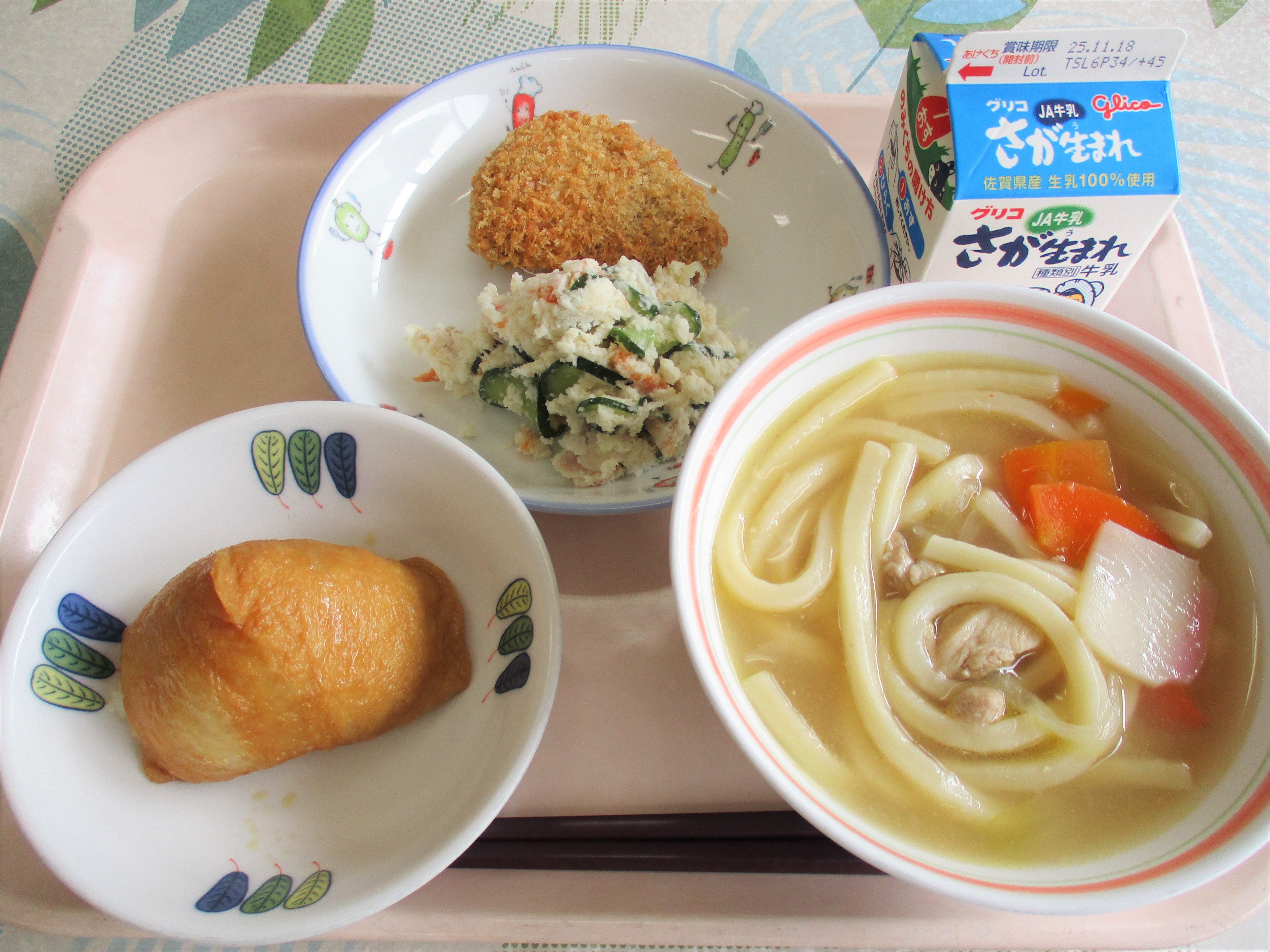 HOME > お知らせ > 今日の給食 > 11月5日(水)の給食 11月5日(水)の給食 入力日2025年11月5日 閲覧数37 いなり寿司 牛乳 五目うどん 南瓜サンドフライ おからのサラダ 「いなりずし」について 「いなりずし」の名前 の由来 には、いろいろありますが、稲荷神社 にお供 えをされてある油揚 げにごはんをつめたものがはじまりだといわれ、誕生 したのは、江戸時代 とされています。給食の「いなりずし」は、調理員 さんが、1こずつ心 をこめて、作 ってくださいました。感謝 をしていただきましょう。 前へ 一覧へ戻る 次へ