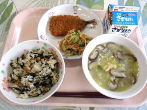 HOME > お知らせ > 今日の給食 > 2月16日(月)の給食 2月16日(月)の給食 入力日2026年2月17日 閲覧数44 献立名 ひじきごはん 牛乳 いわしのフライ 切り干し大根のハリハリあえ 白菜と生しいたけの味噌汁 「いわし」について 「いわし」を漢字 にすると、魚 へんに弱 いと書 きます。いわしは水揚 げ後 、すぐに鮮度 が落 ちて死 んでしまうため「よわい」からきているそうです。いわしには、骨 や歯 を作 る「カルシウム」やその吸収 を助 ける「ビタミンD」がたくさん含 まれています。ほかにも血液 をさらさらにしたり、はだや皮膚 の健康 を保 つ効果 もあります。 前へ 一覧へ戻る 次へ
