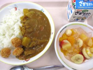 HOME > お知らせ > 今日の給食 > 2月19日(木)の給食 ~お誕生給食~ 2月19日(木)の給食 ~お誕生給食~ 入力日2026年2月20日 閲覧数46 献立名 ほっこり根菜カレーライス(麦ごはん) チーズカリカリ 牛乳 キラキラフルーツミックス 「2月うまれの人 、お誕生日 おめでとう! きらきらフルーツは、ゼリーを大 きな容器 に作 り、冷蔵庫 で冷 やし、スプーンで大 きめにくずします。これに切 ったフルーツを加 え軽 くま ぜ合 わせて作 りました。くずしたゼリーがきらきらするところからつ けた料理名 です。 前へ 一覧へ戻る 次へ