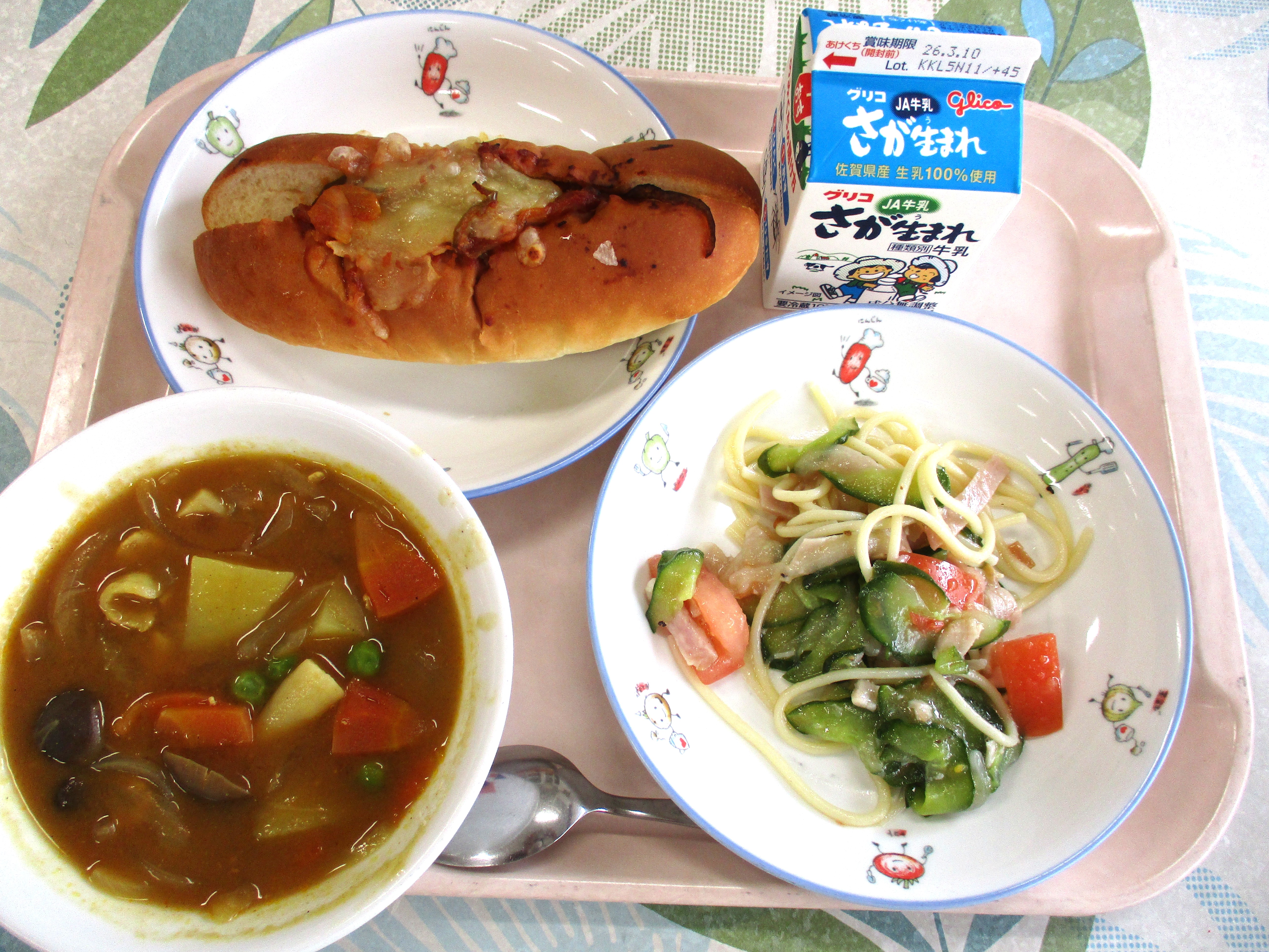 HOME > お知らせ > 今日の給食 > 2月25日(水)の給食 2月25日(水)の給食 入力日2026年2月25日 閲覧数43 献立名 ピザドッグ 牛乳 イタリアンスパゲッテイサラダ カレースープ 今日 は、イタリア料理 で有名 な「ピザ」をイメージした「ピザドッグ」です。ピザドッグは、給食室 で玉 ねぎ、ピーマンを炒 めてソースを作 り、パンの切 れ目 に、そのソースとソーセージをはさんで、チーズをかけてオーブンで焼 きました。一 つ、一 つ心 をこめて作 りました。調理員 さんの愛情 たっぷりのピザドッグです。 前へ 一覧へ戻る 次へ