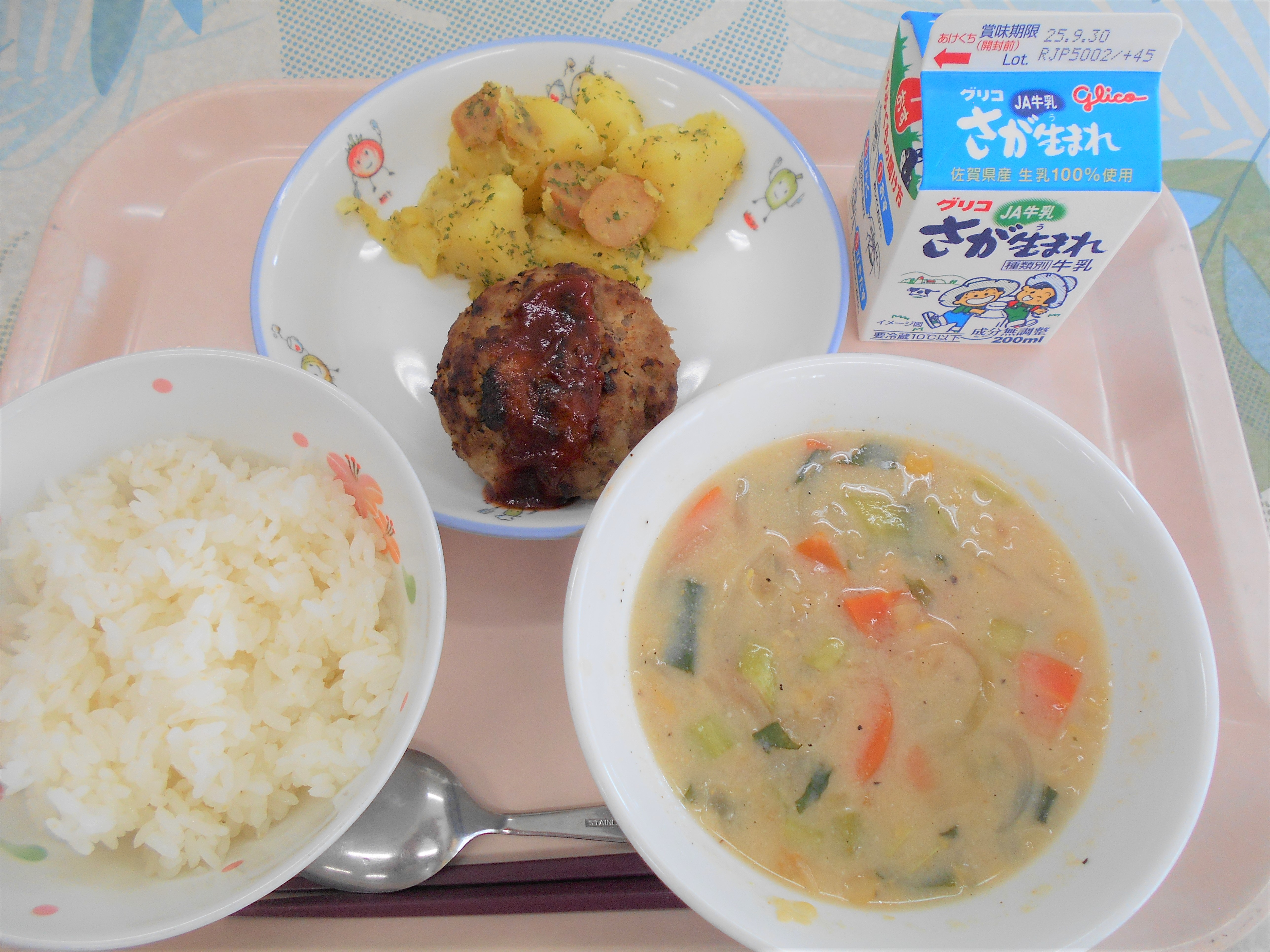 HOME > お知らせ > 今日の給食 > 9月19日(金)の給食 9月19日(金)の給食 入力日2025年9月19日 閲覧数44 献立名 ごはん 牛乳 おからハンバーグ ジャーマンポテト 和風ポタージュスープ 「おからハンバーグ」について 給食室手作 りのハンバーグの材料 は、肉 や玉 ねぎのほかに、おからを使 っています。おからは、大豆 から豆腐 を作 る時 にでるしぼりかすです。捨 ててしまうことが多 い「おから」ですが、食物 せんいがごぼうの2 倍 もあり、おなかの調子 をとてもよくしてくれます。 前へ 一覧へ戻る 次へ