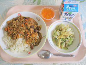 HOME > お知らせ > 今日の給食 > 9月29日(月)の給食 ~お誕生給食~ 9月29日(月)の給食 ~お誕生給食~ 入力日2025年9月29日 閲覧数46 献立名 麦ごはん 牛乳 ドライカレー パリパリポテトサラダ オレンジゼリー 食事 をおいしく食 べるには どんなにおいしい料理 でも、悲 しいときやおこっている時 には、食欲 がなくなって、おいしく食 べることができません。一緒 に食 べている人 にも、いやな気持 ちをさせないように、食事 のマナーを守 って楽 しく食 べましょう。今日 は、8月 と9月生 まれの人 のお誕生給食 です。みんなで楽 しくマナーを守 っていただきましょう。 前へ 一覧へ戻る 次へ