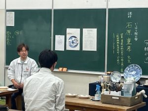 ▲本日の講師、いしはら陶工舎(有田町黒牟田)の石原豊孝先生