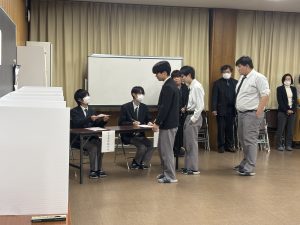 生徒会執行部より選挙管理委員会が立ち上げられ、立候補者による選挙演説がそれぞれ行われました。両者ともに、有田工業高校定時制をより盛り上げたいという思いのこもった力強い演説でした。