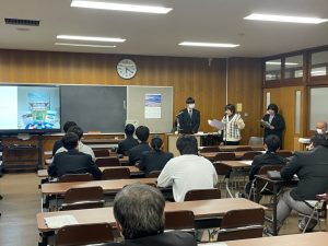 課題研究の授業で制作を進めてきた様子を動画や写真で記録し、それらを用いながら作品のコンセプト等を交えて発表を行いました。4年生は最初こそ緊張した表情を見せていましたが、いざ発表が始まると、それぞれが堂々とした発表を行うことができました。