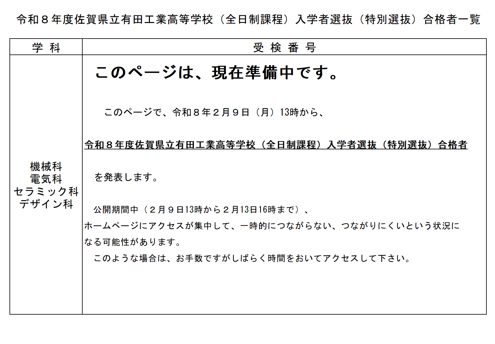 令和8年度特別選抜合格者発表