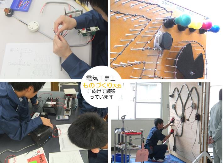 電気科では基礎理論から電気の発生する仕組み、伝送技術、電子理論、電気応用、情報理論、パソコンなど、時代にマッチした新しい学習内容を取り入れて「電気のことがわかる」という目標をもって指導しています。