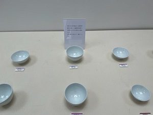 令和4年8月11日(木)から21日(日)まで、九州陶磁文化館で開催された「第2回伊万里・有田伝統工芸士会・佐賀県陶磁器技能士連合会合同作品展」に、本校セラミック科の生徒が制作したご飯茶碗を展示していただきました。この作品は昨年度セラミック科にて行われた伝統的工芸品教育授業(ろくろ技能指導)の中で、講師の先生方に教えていただいた「ろくろ成型技法」を授業内でも取り組んで制作したものになります。