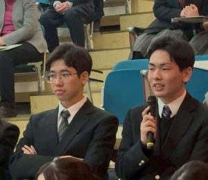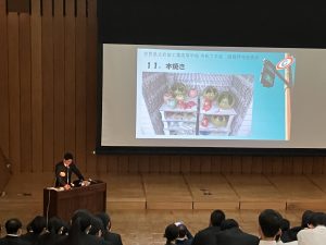 発表後の質問の時間には、全学年から質問がありましたが、特に3年生からの素朴な疑問や技術的なことまでたくさんの質問があり、意欲関心の高い姿にとても頼もしさを感じました。この3年生の制作に向けての意欲的な姿勢を後輩たちが今後も引き継いでほしいと強く思いました。
