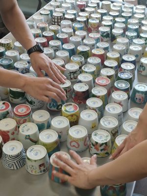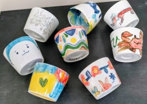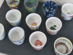 絵付け体験では、今年度から器を「湯呑」➡「そば猪口」に変更しました。湯呑とはまた違った使い方(料理を盛りつけたり、花器として使用したり)ができるのではないかと思っています。絵付けされた器は、色鮮やかな作品、アイデア溢れる作品、思わず微笑んでしまうような作品など、本当に心を込めて描いていただいていることが伝わる作品ばかりでした。我々生徒・職員もこのような作品作りに携わることができ、とてもうれしく思っています。