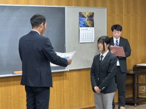 去る11月18日(火)、9月までに募集が行われた「令和7年度・税に関する高校生のポスター、作文コンクール」の表彰が、関係者に来校いただき、本校会議室で行われました。このコンクールは、武雄県税事務所、伊万里税務署、伊万里商工会議所等19団体で構成される「伊万里・有田『税を考える』協議会」が、税の意味や役割を考える機会として毎年主催するものです。