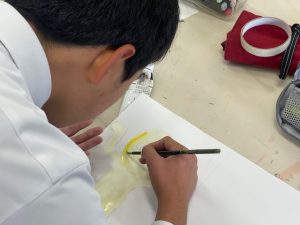 1年生は来年の有田国際陶磁展のポスター原画、2年生は有田陶器市のポスター原画に取り掛かるのです。2つとも有田を代表する大イベントです。