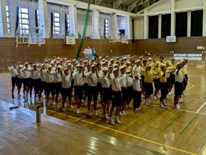 明日は9時から入場行進が始まります。また明日も暑くなりそうです。ご来場になる保護者の皆さまはどうぞ熱中症対策など万全になさっておいでください。