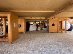 今朝はまず会場設営に全校生徒で取りかかりました。パネルも全団運ばれて明日の正式なお披露目を待っています。