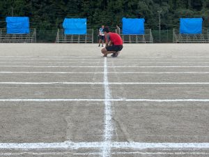 放課後は陸上部と生徒会が中心になってグラウンドのライン引き