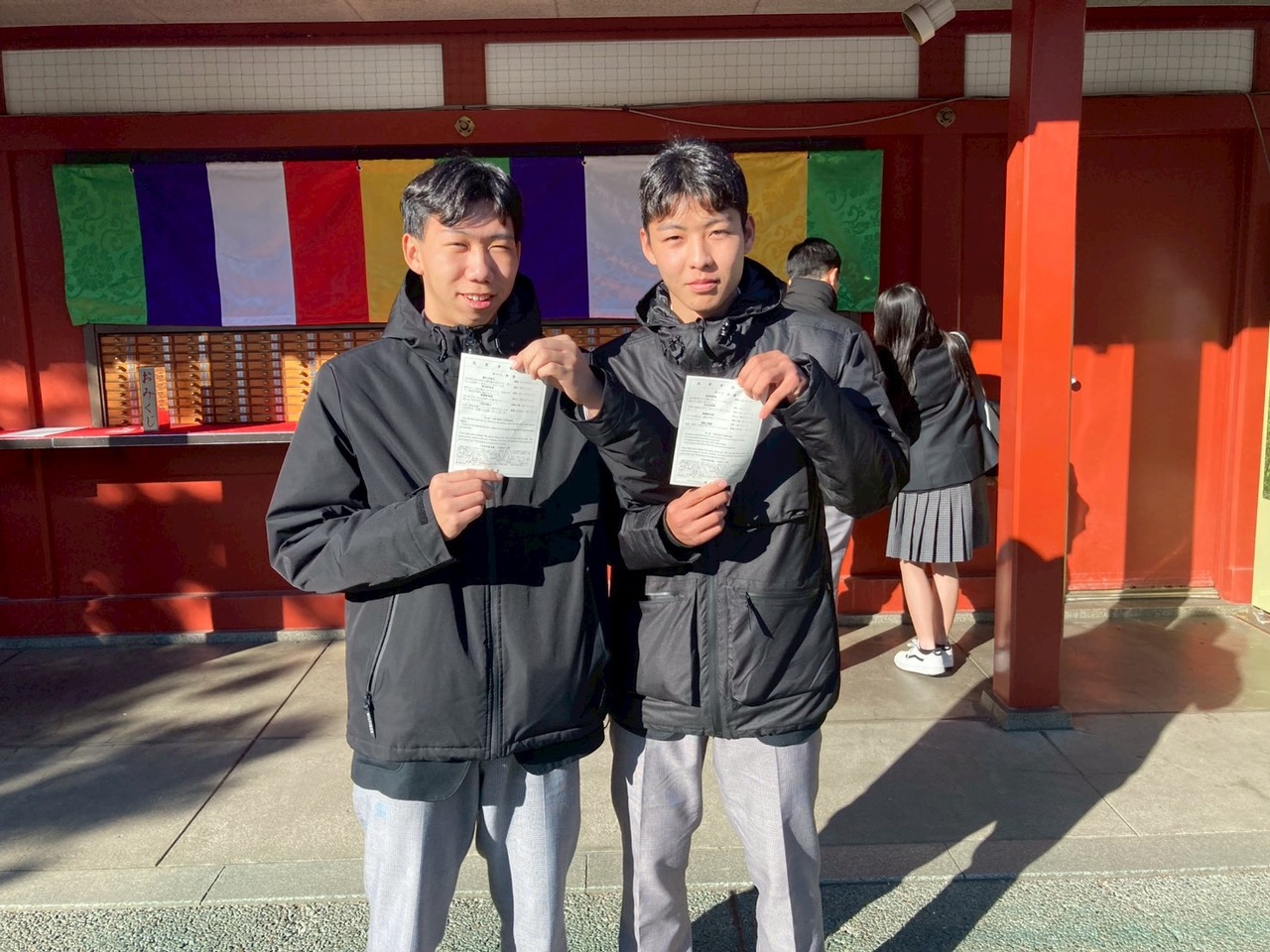 テレビ等ではよく見る光景ですが、直に見る迫力に、みんな嬉しそうです。散策エリア内には、浅草寺、雷門、東京スカイツリー等もあり、みな思い思いに東京の定番スポットをまわっていました。芸能人のロケにも遭遇した生徒もいたようで、東京ならではの記憶に残る散策になったようです。