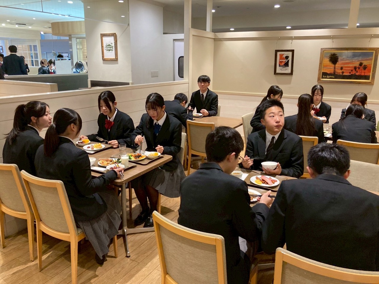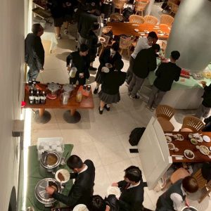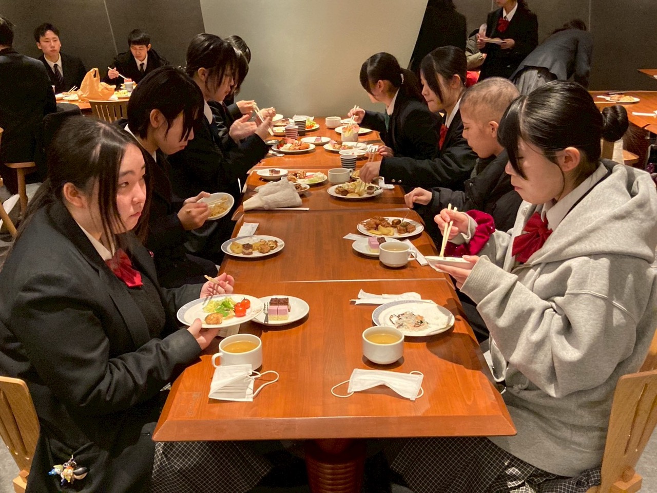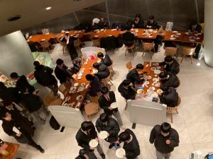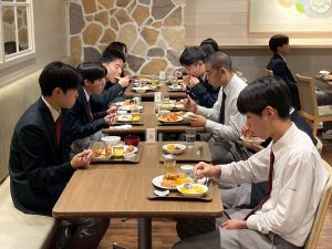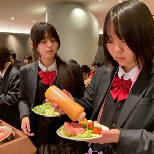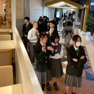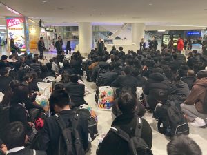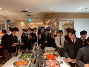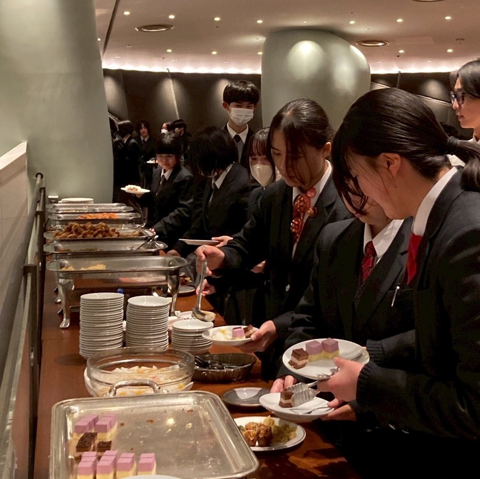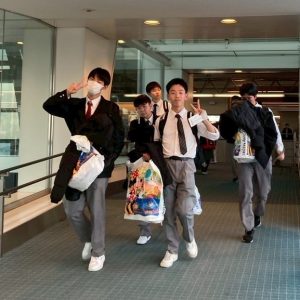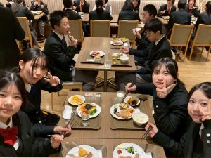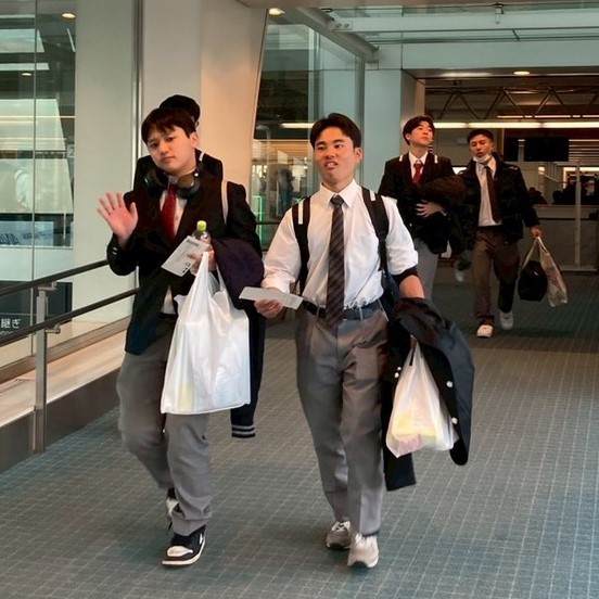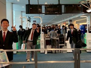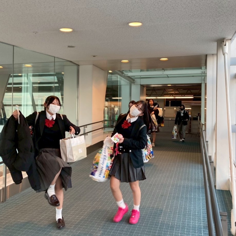 ビュッフェ形式の昼食を済ませると、おなかを満たした生徒たちを乗せたバスはいよいよ九州に戻る便を目指して羽田空港に向かいます。