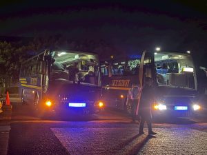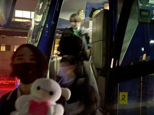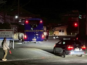 福岡空港からは、19時を目途にバスで学校に向かいました。武雄温泉駅を経て20時40分、無事に学校に到着しました。保護者の皆さま、遅い時間のお迎えありがとうございました。伊万里到着分はここで乗り換えて学校を出たところです。家に着くまでが修学旅行、気を付けて帰ってくださいね。