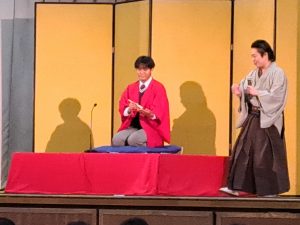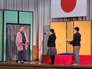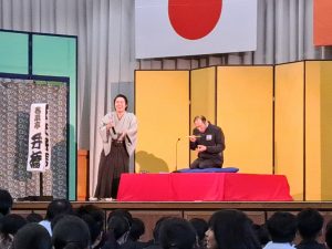 11月20日(木)芸術鑑賞会を行いました。今年度は古典芸能の寄席です。落語家の春風亭弁橋様、桂枝太郎様、太神楽曲芸の鏡味小時様をお招きしました。
