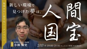 もうひとつ、特報です!このニュースでも何度か紹介したセラミック科3年の小林知史さん(東京・音羽中出身)が地域みらい留学主催のトークイベントに出演します!「目指すは人間国宝!? 地域みらい留学を通して見つけた新しい自分とは」のタイトルで、1時間のトークショーの大舞台です。受賞(関連記事にジャンプします)をきっかけにテレビや新聞で取り上げられることの多い小林さんですが、みらい留学生の視点で、自身の過ごした3年間の思いを聞ける貴重なチャンス、ぜひこちらも視聴の登録をお願いします!(※イベント参加、視聴には無料の事前登録が必要です)