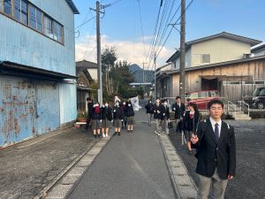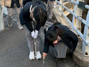令和7年12月17日(水)の放課後に、地域清掃ボランティアを行いました。この企画は年に2回、地域への恩返しを目的に行われている恒例行事になります。内容としては、各クラスの風紀委員2名、インターアクト部、生徒会執行部、ボランティア希望者の生徒たちが放課後に集まりました。校外を4コースに分かれてゴミ拾いなどの清掃活動を行っています。