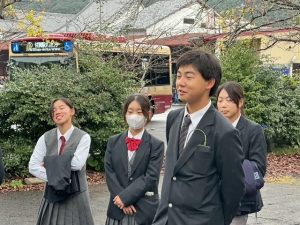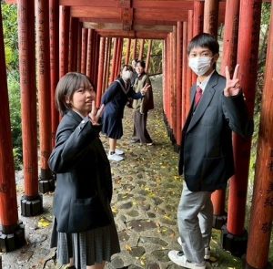 最終日は鹿島市にある祐徳稲荷神社に参拝しました。ほとんどの生徒が奥の院まで登り、汗を流しながらも、達成感に満ちた表情で降りてきたのが印象的でした。あっという間に交流会も終盤を迎え、駐車場にてお別れ会となりました。それぞれの学校代表から感想が述べられ、「とても楽しかった。」「まだ帰りたくない。」「来年は富山を案内しますので来てください。」など、心温まる言葉の数々が飛び交う感動的な締めくくりとなりました。