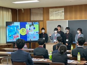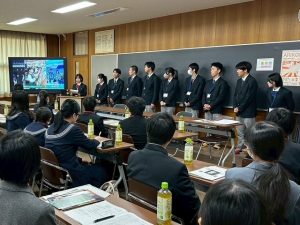初日は午後2時ごろに本校へご到着になり、生徒会による歓迎行事を行いました。まず、馬場校長先生と草場生徒会長が歓迎の言葉を述べました。その後、各校による学校紹介や生徒会活動の紹介が行われ、活発な情報交換会となりました。紹介後の質疑応答では、多くの質問が飛び交い、大変有意義な会となりました。