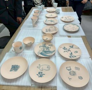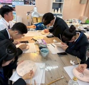 2日目は、九州陶磁文化館を見学していただいた後、本校の文化祭も見学していただきました。本校の生徒会役員が案内役となり、各学科を巡って見学したり、模擬店での飲食を共にしたりして交流を深めました。午後は体験工房・ろくろ座へ移動し、絵付け体験をしていただきました。姉妹校の参加生徒の中には、工芸科やデザイン科の生徒もいたため、時間をかけて非常に繊細な絵を描いている様子が見受けられ、とても印象的でした。体験後は、泉山磁石場とアリタセラを見学し、有田焼に関する理解を一層深めていただきました。
