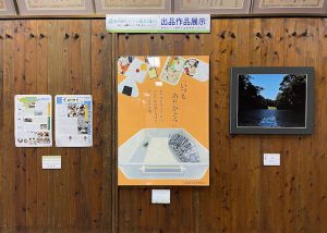 3部門の作品を、生徒たちの目に触れる図書館前のホールに展示しています
