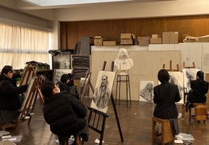 ●窯業研究部 ◎静物の部 準特選 小林知史(C3)、江口琴菜(D3)石膏デッサンの練習(本校にて)