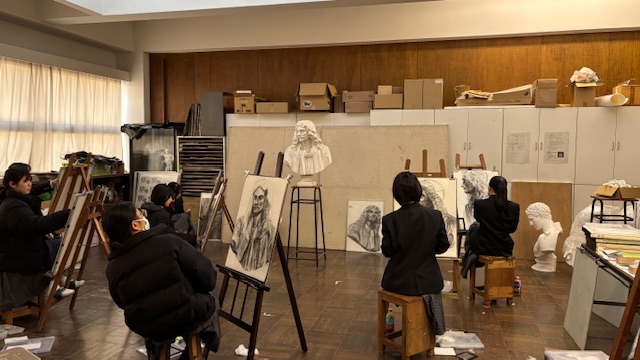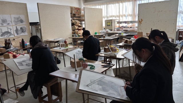 静物デッサンの練習の様子(本校にて)