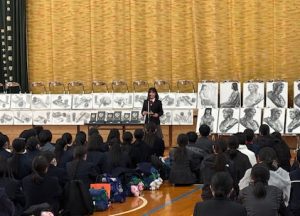 開会は各部門の会場で行われ、制作4時間という短い時間でしたが、日ごろの活動と違い、他校の生徒と描き合う姿は緊張感にあふれていました。4時間の制作を終え、審査中に生徒たちは昼食をとり、閉会式での結果発表を待つことになりました。