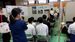2年生は、いよいよ来年には、進路を決める時が来ます。進学希望者も最終的には就職することになります。地元にある企業や様々な仕事の内容について知っておいて欲しいことから、参加していただいております。