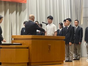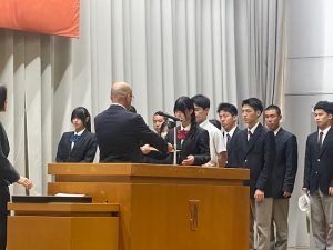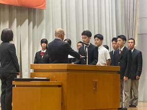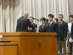 令和7年度の1年生40名、2年生35名が1ヵ年皆勤で表彰されました。