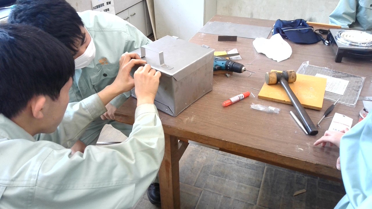 こちらは3年1組「旋盤、溶接を用いたものづくり」班の製作中の様子です。