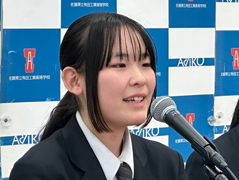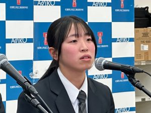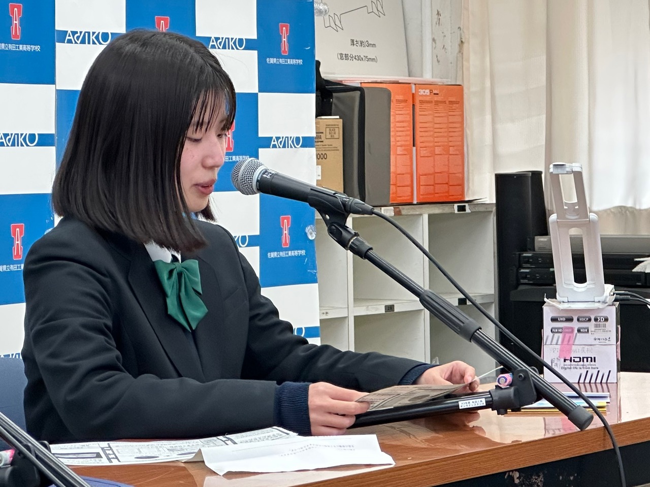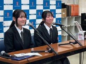 今年は全国から10校、14組の発表が行われました。本校は佐世保市内の小さな私設美術館のための鑑賞ガイドを制作した江口ななさん(D3・広田中出身)と、観光に頼らない高校生視点の街に活力を生むデザインを提案する、前田理桃さん(D3・白石中出身)と山口夏季さん(D3・東陵中出身)です。