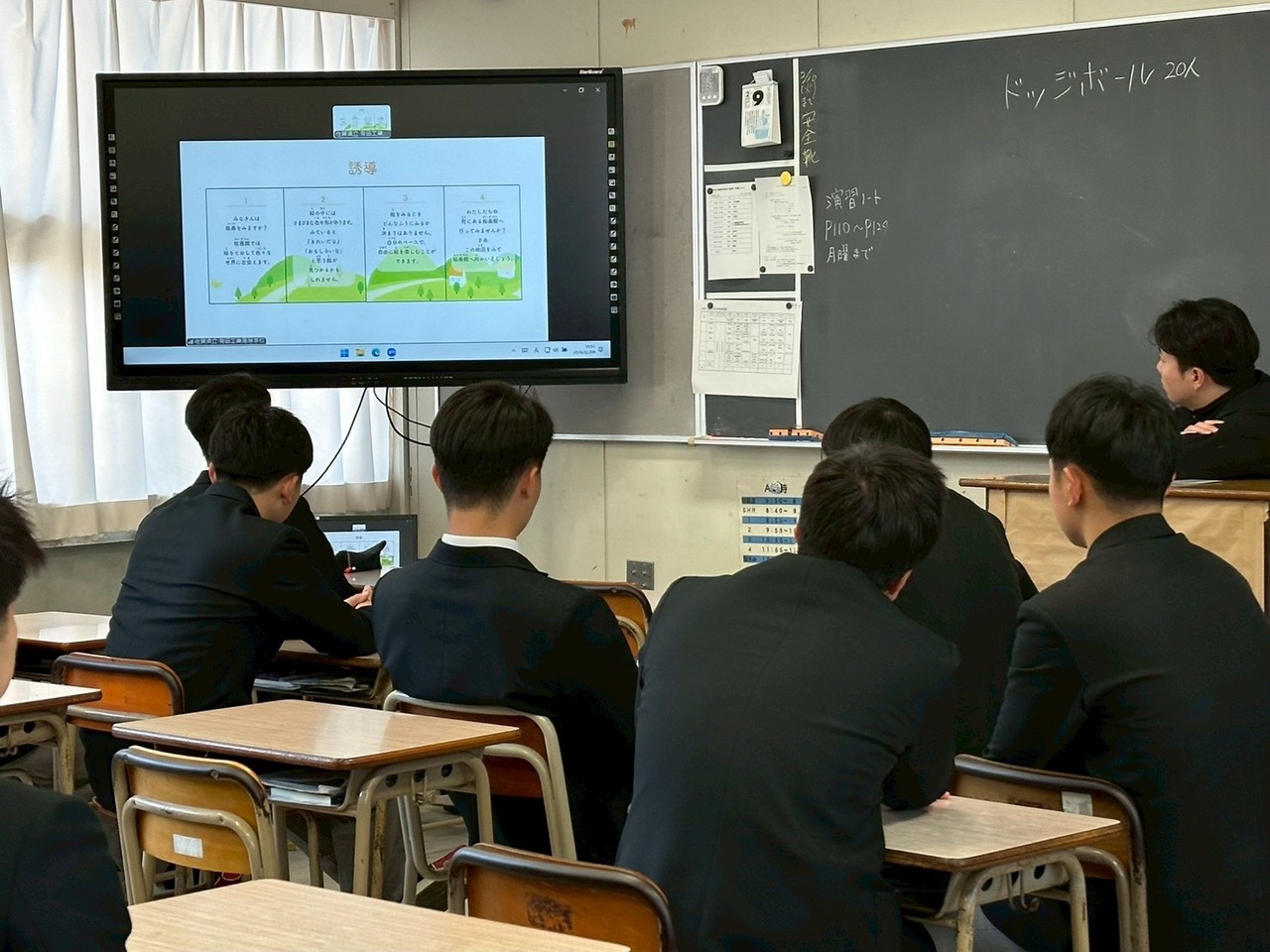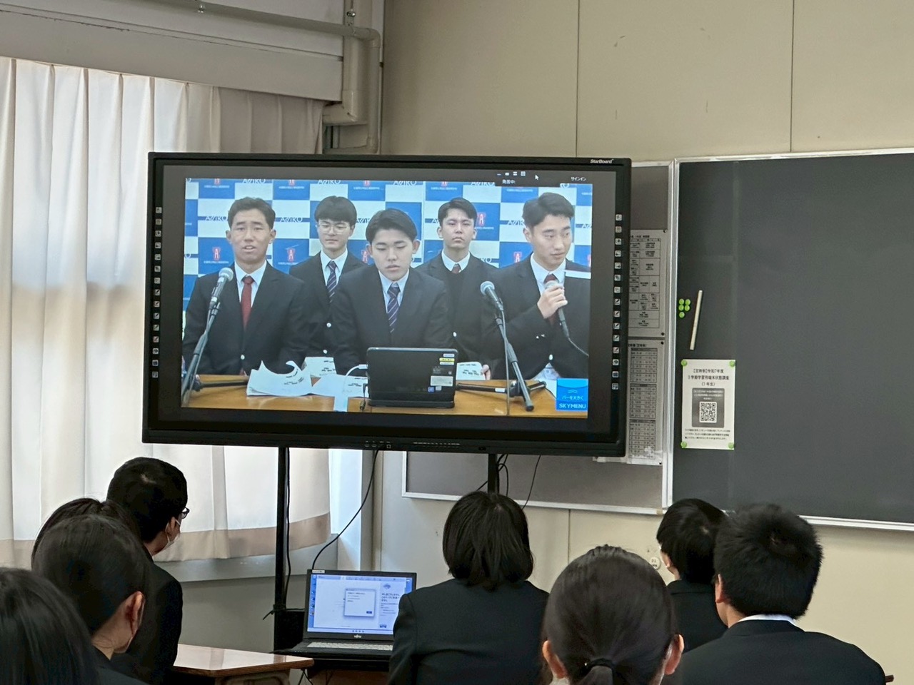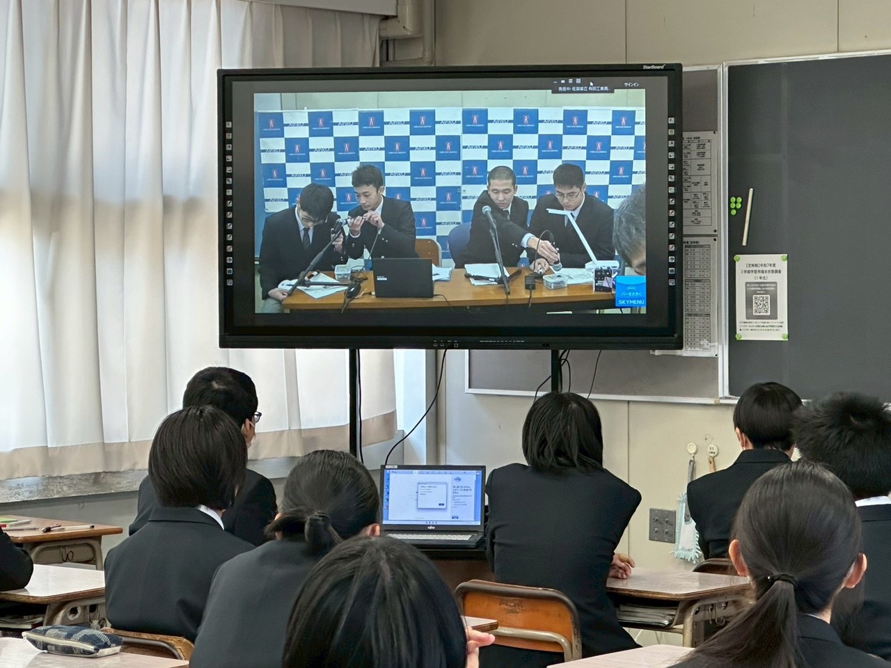 教室で発表を聞く後輩たち