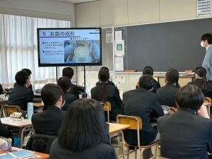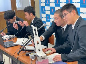 ・機械科/岩永疏羅さん、庄司優斗さん、西川遼さん、前川颯志さん、土本駿太郎さん(M3)「動くものを作ろう!」発表では、それぞれテーマを深く掘り下げ、しっかりと研究成果を示すものづくりの過程を話してくれました。配信形式で行われたので、教室ではクラスメートはもちろん、後輩たちが真剣なまなざしで視聴していました。ほかの科の発表が聞けるのもこの機会しかありません。専門分野は違えど、同じものづくりの学校です。先輩たちの姿勢をしっかり受け継いでいってほしいものです。