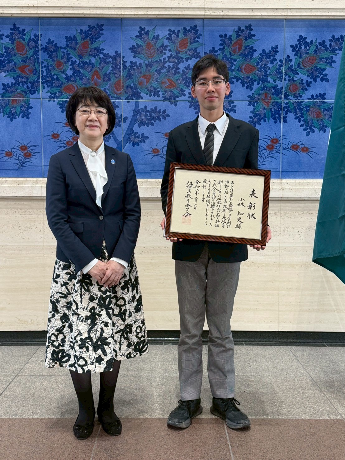 去る2月6日(金)に佐賀県県庁新館 県民ホールにて令和7年度佐賀県教育委員会表彰が行われました。本校から、窯業研究部の小林知史さん(セラミック科3年)が表彰式に参加しました。これは、昨年12月に第5回日本和文化グランプリにおける学生最優秀賞の受賞を評価されたものです。(※下線部から受賞を紹介した記事にリンクします。2025年11月13日掲載)