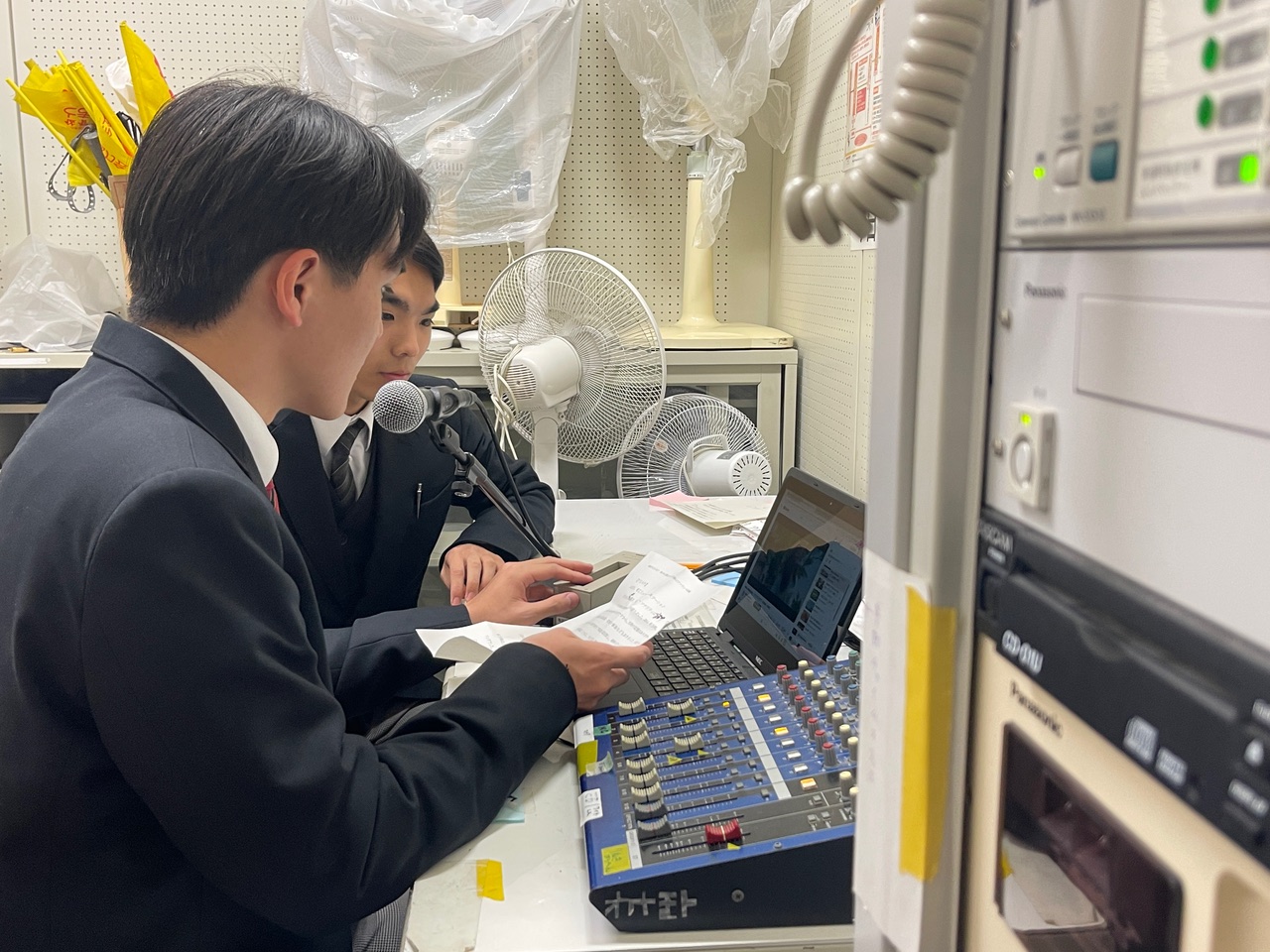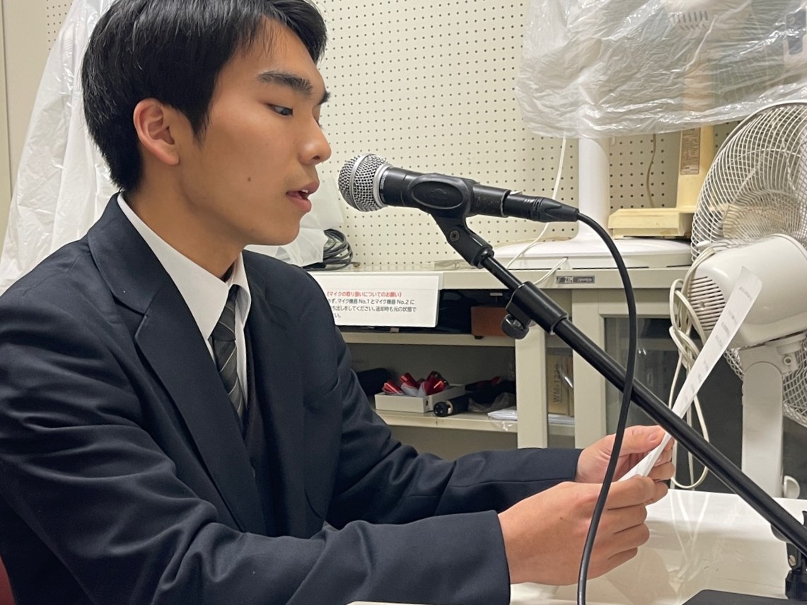 午後2時46分を迎えました。今年は生徒会長で放送部の水崎葵陽さん(C2)が、黙とうを呼びかけるアナウンスを担当し、部活動や作業で残っている生徒たち、明日の合格者確認の準備をしている先生たちと黙祷を行いました。