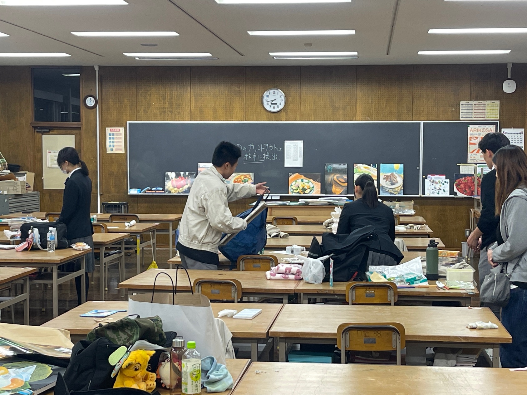 この日に合わせて居残りで課題に取り組んだ生徒も数名いて、保護者の方々は案内された実習室でお子さんの作品などもじっくり堪能されたようです。写真に撮って帰られる方も多くいらっしゃいました。