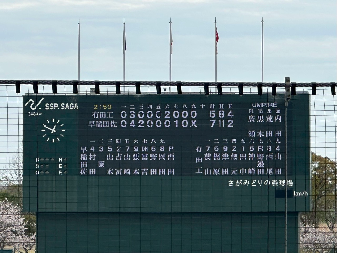 早稲田佐賀|042 000 10×|7雨の心配された天気も朝のうちは春らしい青空